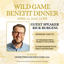We are delighted to invite you to the 2026 Wild Game Benefit Dinner on Saturday, April 11, 2026 at 6 PM, presented by the Shoals Christian Athletic Booster Club benefiting Shoals Christian Athletics.