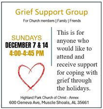This is for anyone who would like to attend and receive support for coping with grief through the holidays.